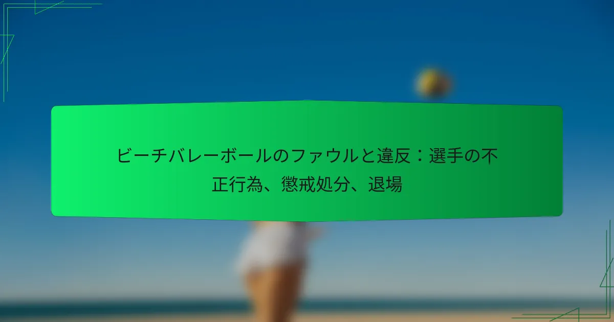 ビーチバレーには、ゲームに影響を与えるいくつかの重要なファウルと違反があります。これらの違反を理解することで、選手はフェアプレーを維持し、試合中のペナルティを避けることができます。