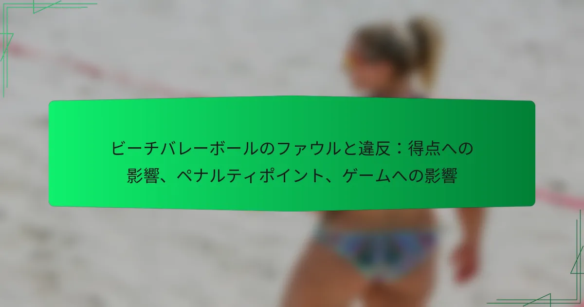 ビーチバレーボールにおける主要なファウルと違反には、公正なプレーを妨げる行為が含まれます。これにはネット違反、フットファール、違法なヒットが含まれます。これらのルールを理解することは、選手と審判の両方にとって、ゲームの整合性を維持するために重要です。