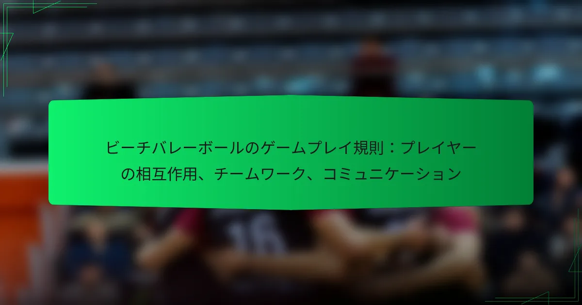 ビーチバレーボールのゲームプレイは、国際バレーボール連盟(FIVB)によって定められた公式規則に従っており、選手同士の相互作用、チームワーク、コミュニケーションの重要性が強調されています。これらの要素は、競技環境でもレクリエーション環境でも、パフォーマンスを向上させ、ポジティブな雰囲気を作り出すために不可欠です。効果的なコミュニケーションと協力を促進することで、チームは試合中のゲームプレイと適応力を大幅に向上させることができます。