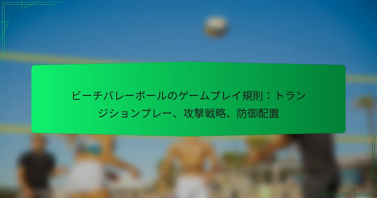 ビーチバレーボールのゲームプレイ規則は、国際バレーボール連盟(FIVB)によって定められており、選手の行動、得点、ゲームプレイの構造に関する重要なルールを概説し、公正な競技を確保します。チームが迅速に守備から攻撃に移行するトランジションプレイなどの重要な要素は、勢いを維持し、得点機会を創出するために不可欠です。さらに、攻撃戦略は得点を最適化し、相手の守備に挑戦するように設計されており、コート上でのチームワークとコミュニケーションの重要性を強調しています。