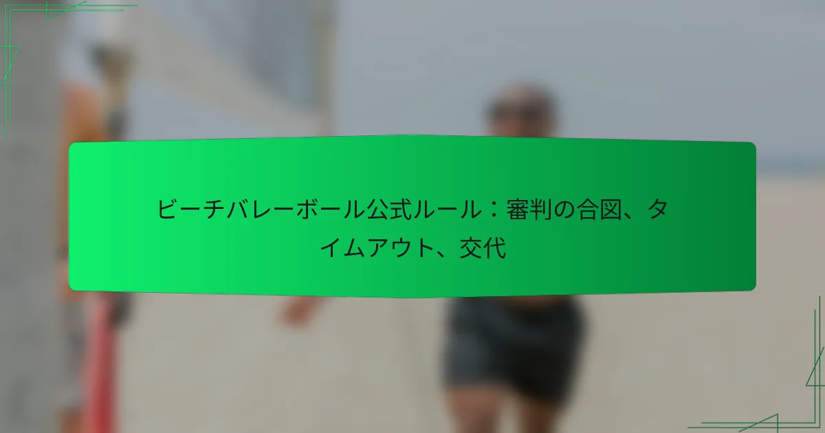 ビーチバレーの審判の合図は、試合中の効果的なコミュニケーションに不可欠です。これらの視覚的な合図は、選手、コーチ、観客が審判の決定を理解するのに役立ち、スムーズなゲームプレイとルールの遵守を確保します。