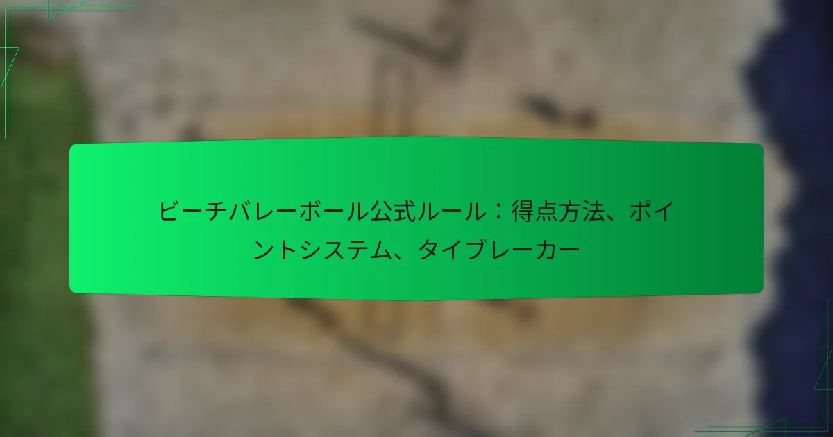 ビーチバレーには、伝統的なスコアリングとラリースコアリングという2つの主要なスコアリング方法があり、それぞれがゲームプレイや戦略に影響を与えます。ポイントシステムは、チームがセットや試合に勝つためにポイントをどのように蓄積するかを決定し、タイブレーカーのルールは、チームが互角の戦いをしているときに公平性を確保します。これらの要素を理解することは、選手やファンにとって非常に重要です。