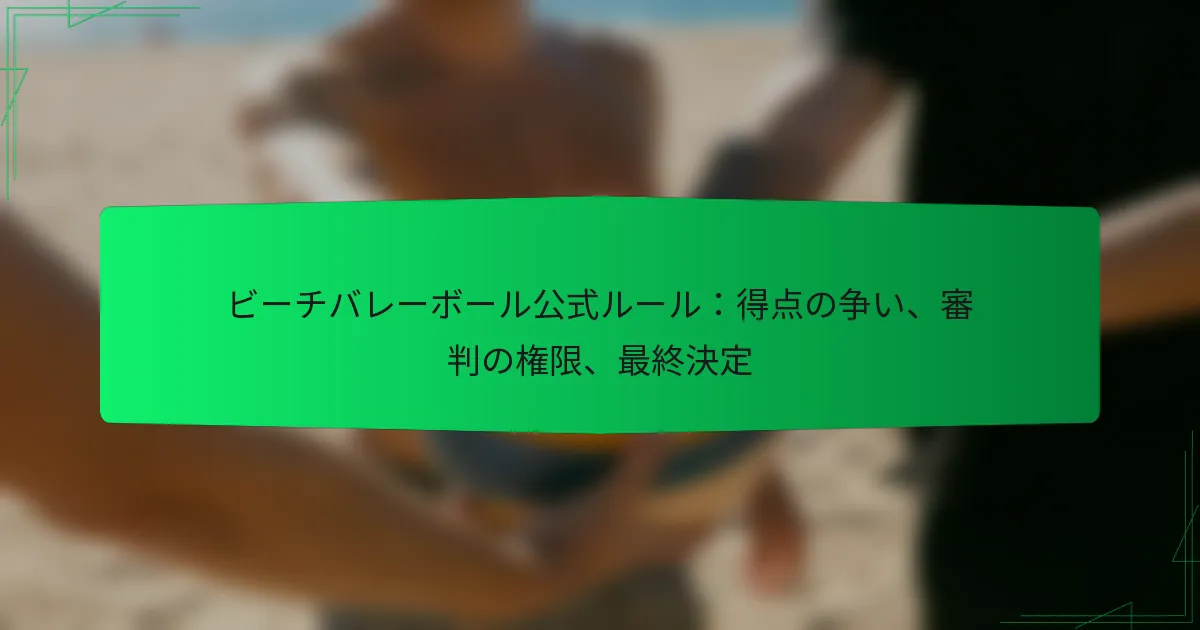 ビーチバレーボールにおいて、テクニカルファウルと不正行為は、ゲームの整合性と流れを確保するための重要な要素です。テクニカルファウルはプレーを中断させ、得点に影響を与えるペナルティにつながる可能性があります。一方、不正行為はスポーツの精神を損ない、懲戒処分を受けることがあります。これらの行為は、違反の重大性に応じて警告から出場停止までさまざまです。これにより、定められたルールを遵守する重要性が強調されます。