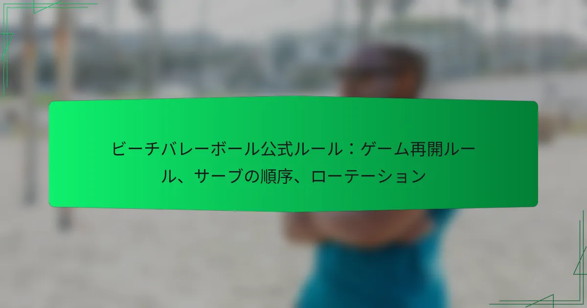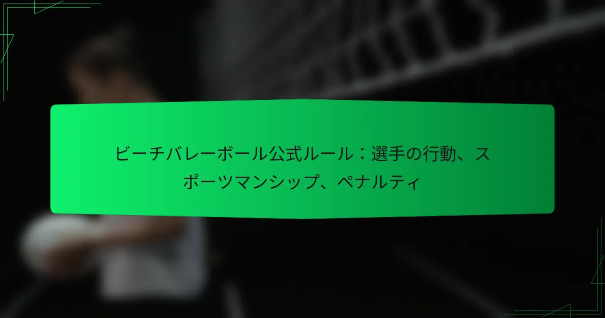 ビーチバレーの試合前プロトコルは、チームと審判が競技に備えることを確実にします。これらの手順には、審判とチーム間のミーティング、機器の検査、選手のラインアップの確認が含まれ、スムーズな試合体験を促進します。