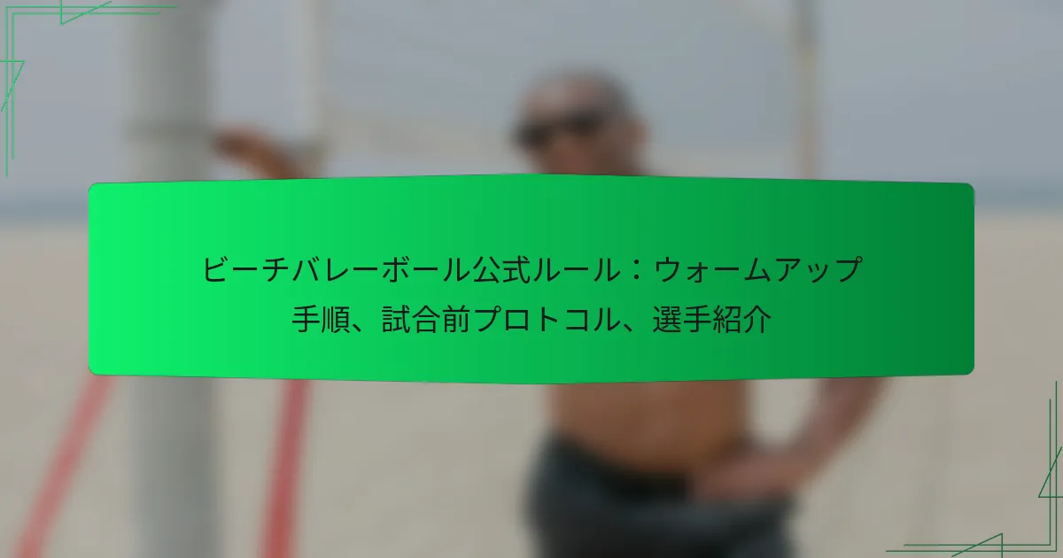 ビーチバレーにおいて、公式なウォームアップ手順は、試合前に選手を身体的および精神的に準備させるために重要です。これらの構造化された活動には、パフォーマンスを向上させ、怪我のリスクを減少させるためのドリルが含まれます。さらに、試合前のプロトコルや選手の紹介は、スムーズな競技を確保し、観客を引き込む上で重要な役割を果たし、エキサイティングなイベントの舞台を整えます。